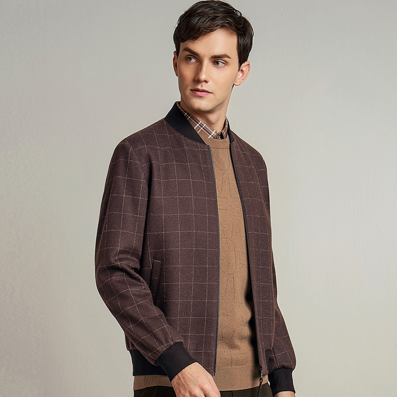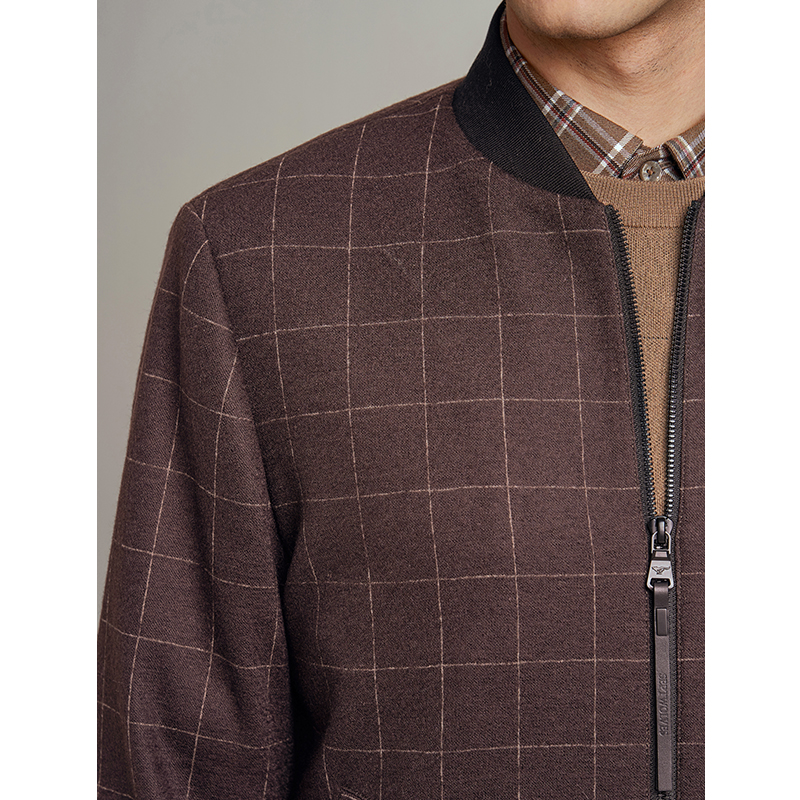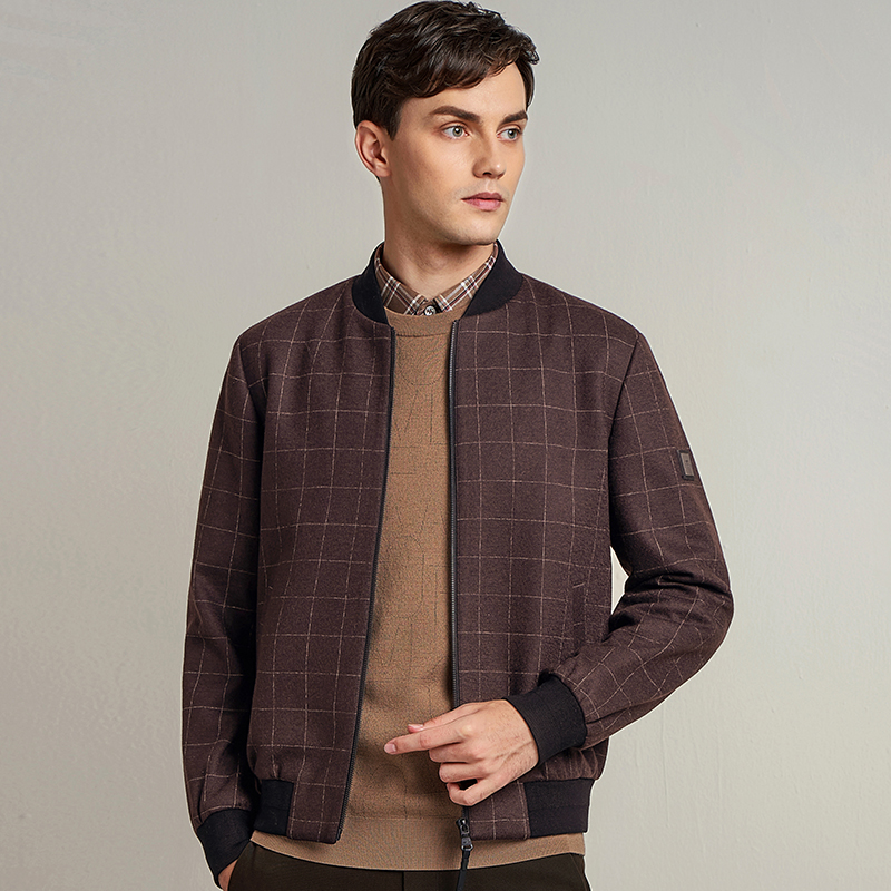 经典棒球领夹克,款式简约实穿。真皮辅料,棒球领设计,针织罗纹袖口、底摆,保暖舒适。精致LOGO皮拉片、胶标,彰显品质感。