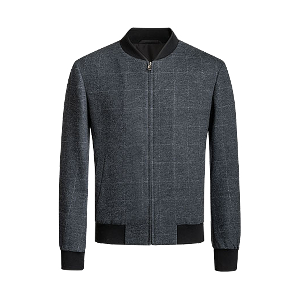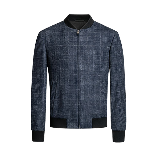 111A50101724棒球领格子单夹克